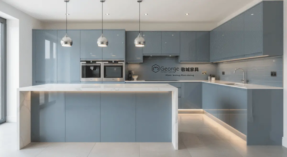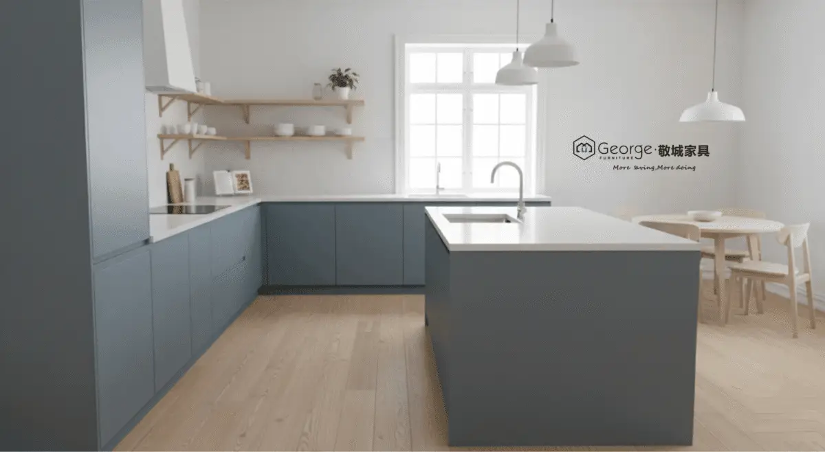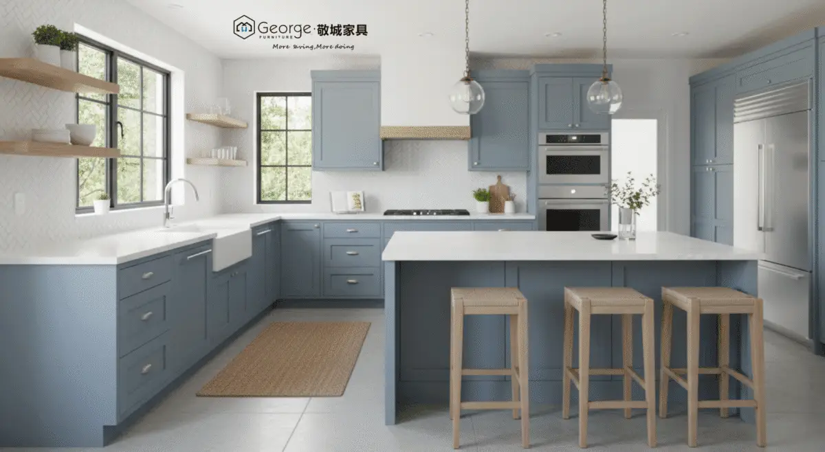 - Customized furniture: This is the choice of excellence if you desire modern blue-grey kitchen cabinets designed down to the millimeter for your space. For homeowners exploring natural wood options alongside painted finishes, Natural Maple Kitchen Cabinets: Design, Customization & Manufacturing provide a clear example of how material selection, customization, and manufacturing quality influence the final outcome.