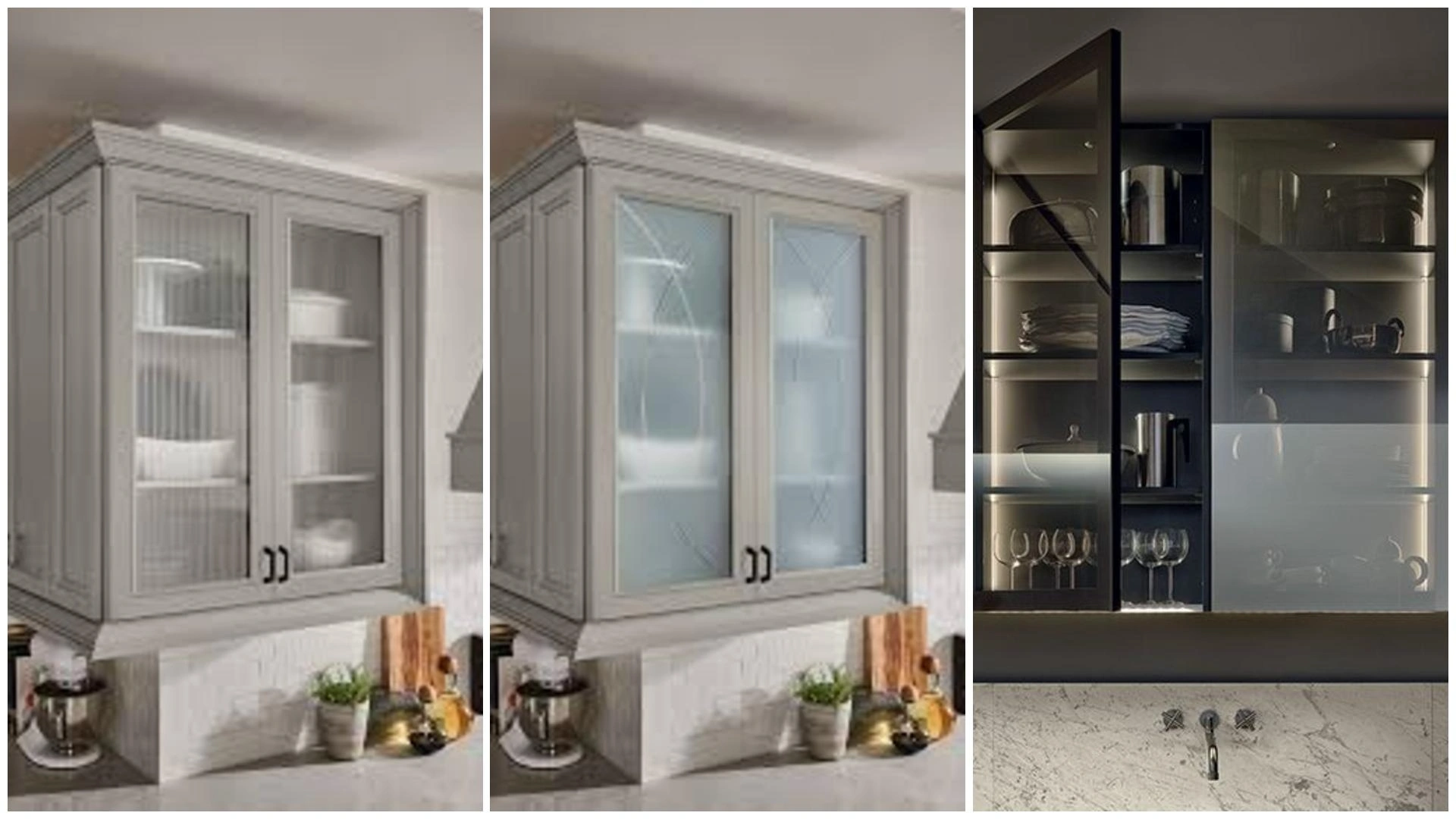 - Frosted glass kitchen cupboard: Dilutes visibility, but permits light to pass. A good alternative to daily meals.