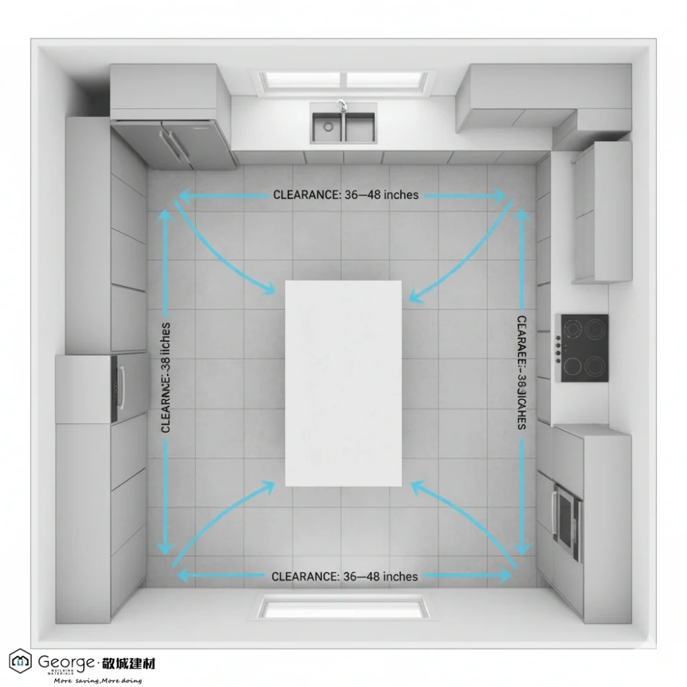 Minimum Clearance: 36 inches (between the island and opposing counter/appliance).