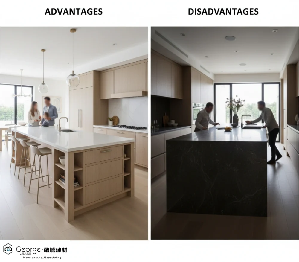 Medium islands are the most common because they offer the best balance. Large islands are perfect for open layouts that need a central gathering point in high-end projects like villas and hotels.