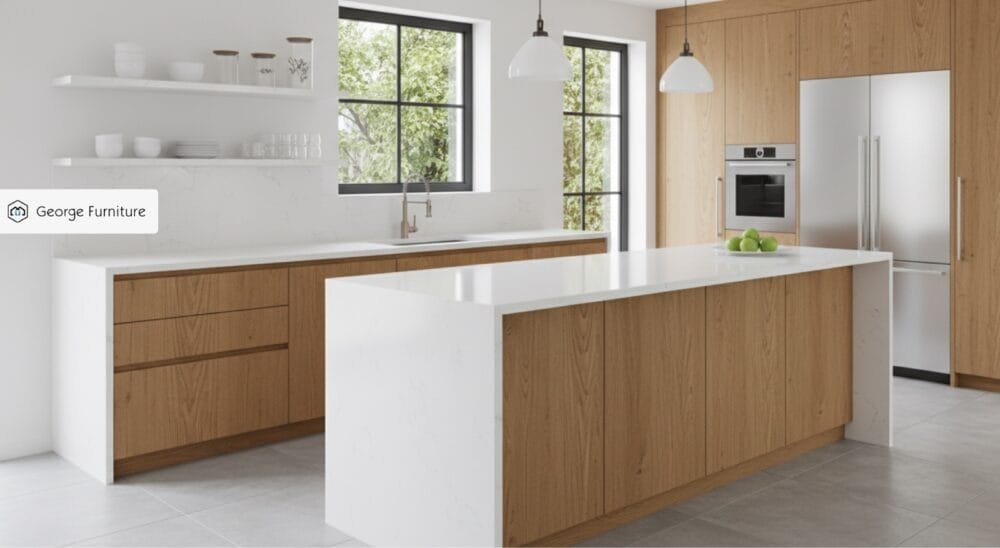 In several recent residential projects supplied by George’s Kitchen Cabinets, clients renovating older homes chose natural maple kitchen cupboards to brighten kitchens with limited natural light while avoiding glossy white finishes that show wear more easily over time.