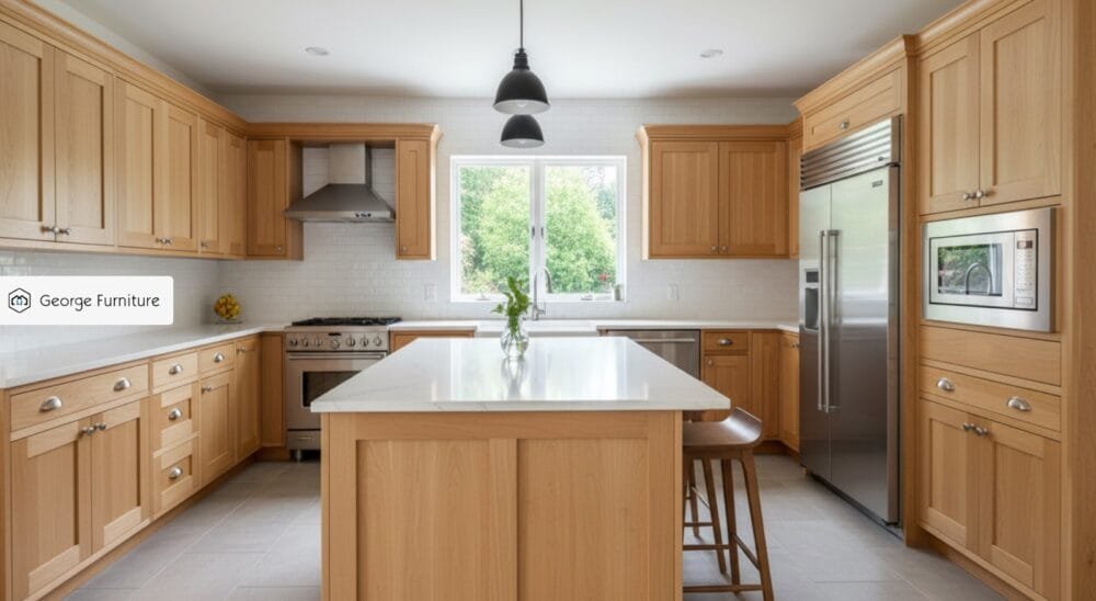 The cost of natural maple kitchen cabinets depends on cabinet size, construction method, door style, finish, and order quantity. As a direct manufacturer, George’s Kitchen Cabinets offers factory pricing without distributor markups. Custom maple kitchen cabinets are typically priced based on project specifications rather than fixed retail rates, providing better value for long-term use.