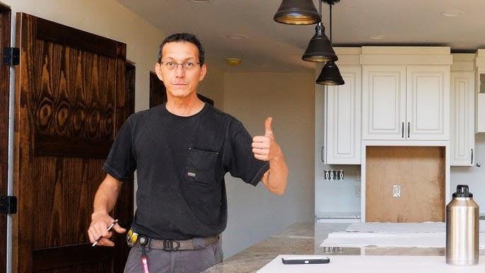 - Cabinets installed first