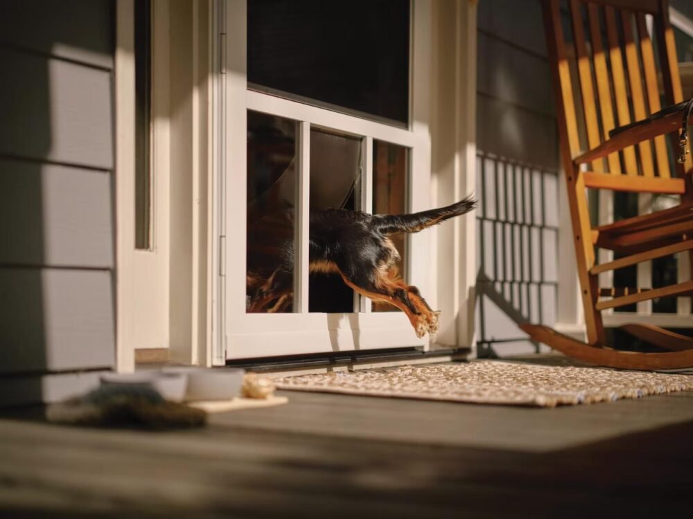 Built-in pet access at the bottom. Perfect for pet owners who want convenience. Avoid if security is a top concern unless it includes a locking panel.