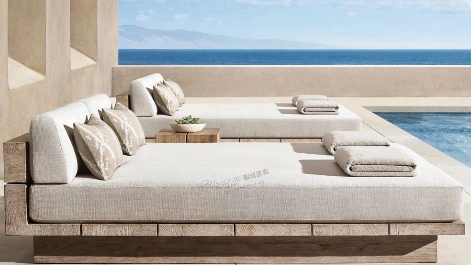 Material: Teak Wood, High-Density Foam, Waterproof Fabric