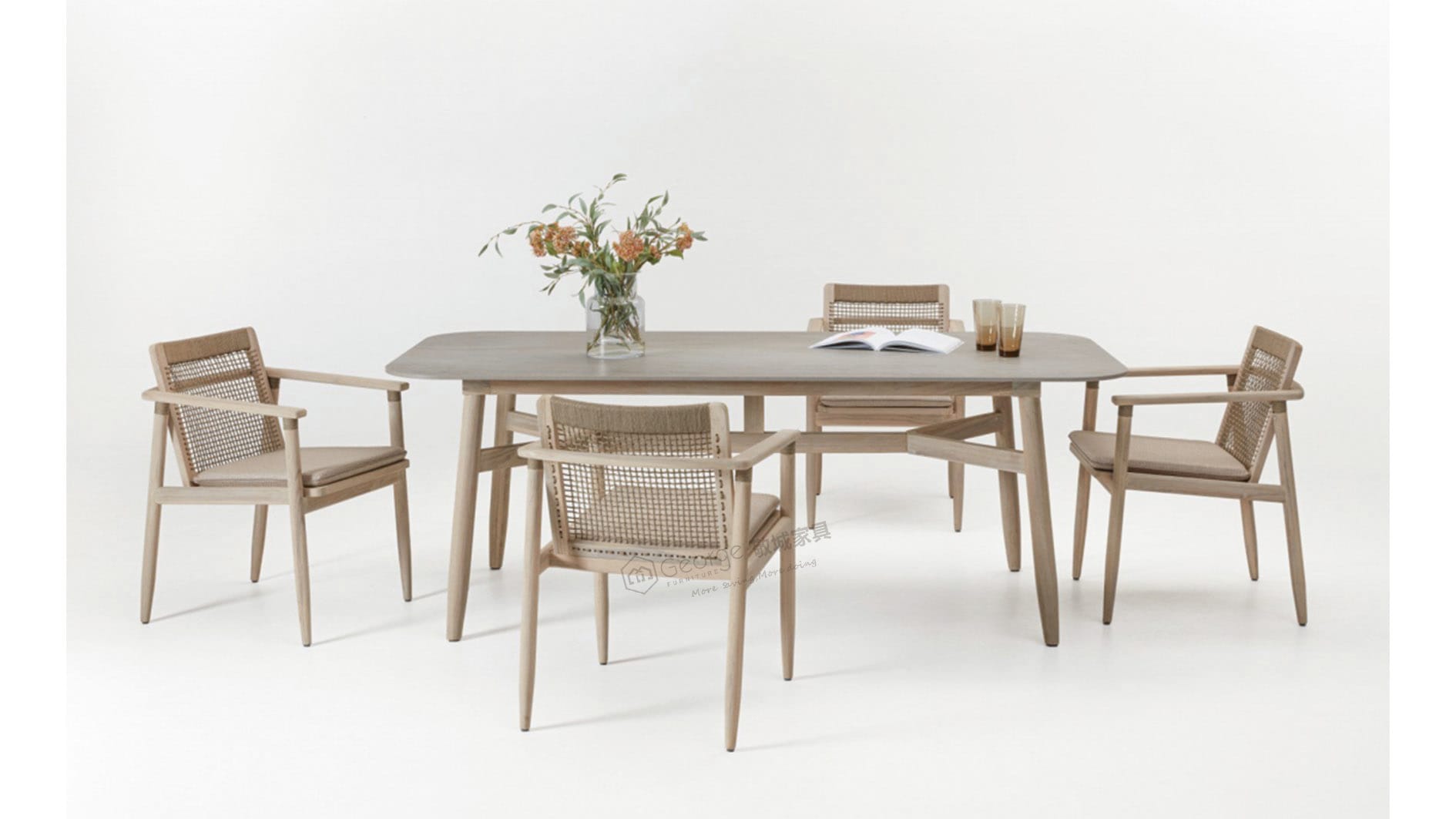 Introducing the David Collection, a stunning outdoor dining set crafted to elevate your patio or garden. The David dining table, available in two sizes (2100x1000x750mm and 2800x1000x750mm), pairs perfectly with the David dining chair. Made from durable wood, woven rope, high-density foam, and waterproof fabric, this teak outdoor dining furniture provides both style and comfort.