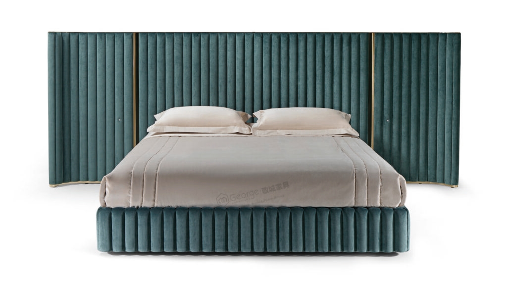 Luxurious LEONARDO bed with fluted velvet headboard.