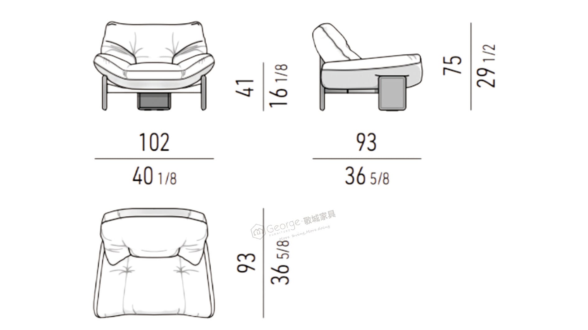 Pillowy-soft cushions top the boxy silhouette.