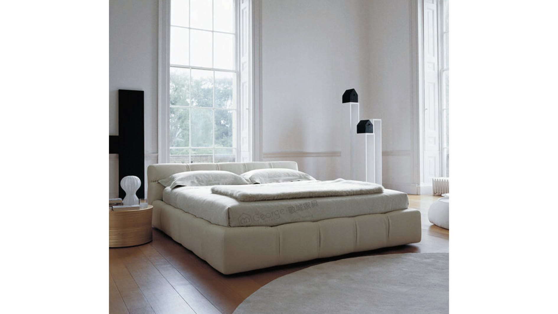 This luxurious puffy upholstered bed offers exceptional comfort with a plush, high-resilience foam fill. The durable imported pine frame and a silent slatted base provide robust, long-lasting support. Available in a variety of materials, including double-sided brushed fabric, microfiber, and matte leather.